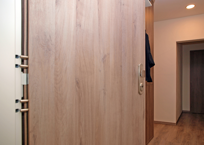 - Die Oberflächenbehandlung befindet sich auch im Türfalz, was bei offener Tür und von innen ein harmonisches Gesamtbild schafft