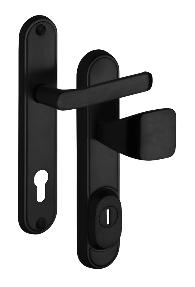 Schutzbeschlag Rostex R1 Decor Round RC4, Schwarz matt, Drücker - Eckiger Drücker