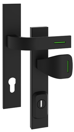 Schutzbeschlag Rostex RN1 Fondi, Quadratisch, Schwarz matt, Luminogrün, Griff - Quadratischer Griff