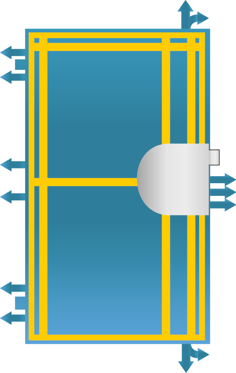 - Eine doppelte Dichtung entlang des gesamten Türumfangs schützt in den Wintermonaten vor dem Eindringen von kalter Luft und dem Entweichen von Wärme, in den Sommermonaten umgekehrt.