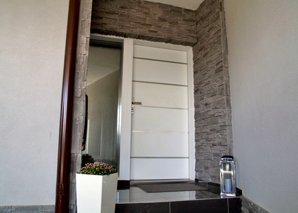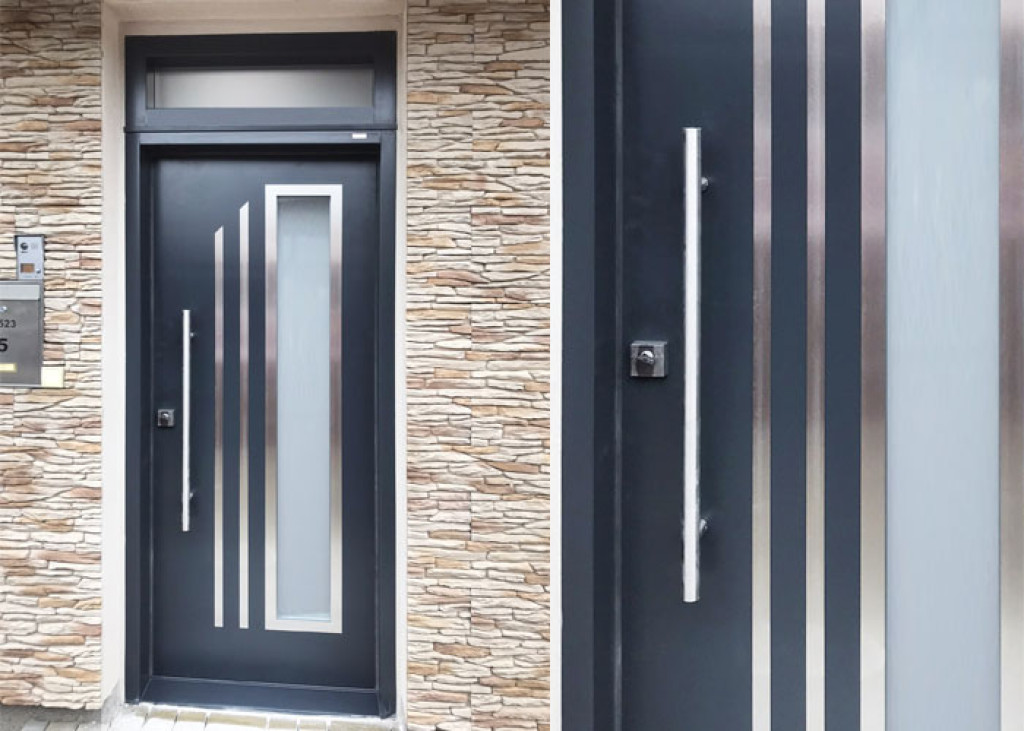 ADLO - Thermo-Außenraumtür Teduo, atypisches Design, Leistenausführung, atypischer Türgriff, atypisches seitliches Fixteil
