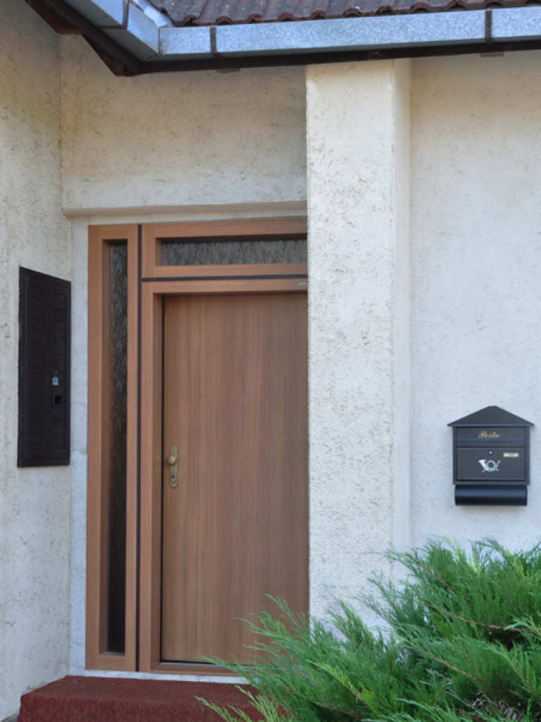 ADLO - Sicherheitstür ADUO, Leistenausführung mit Oberlichte, Zarge mit Holzdekor