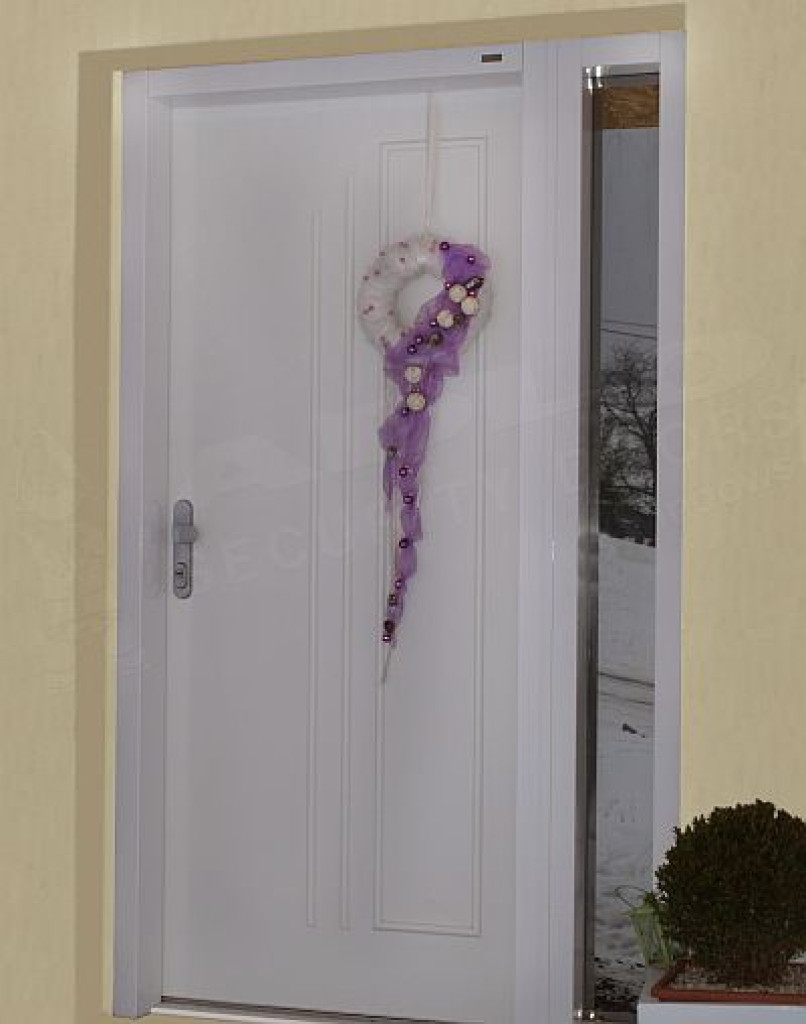 ADLO - Sicherheitstür ARDEN, Leistenausführung L-100, abgerundete Leisten, spritzlakiert RAL, Thermo-Tür und seitlicher Fixteil