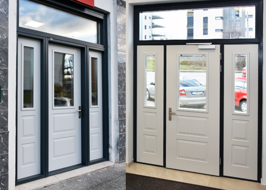 ADLO - Thermo-Außenraumtür ADUO, verglast, Oberlichte, seitliche Fixteile, Abmessungen 305cm x 325cm