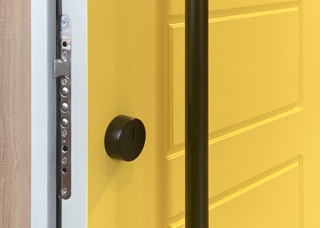 ADLO - Sicherheitstür Zenel, Profildesign, RAL 1023, Türgriff schwarz matt abgerundet mit Rosette