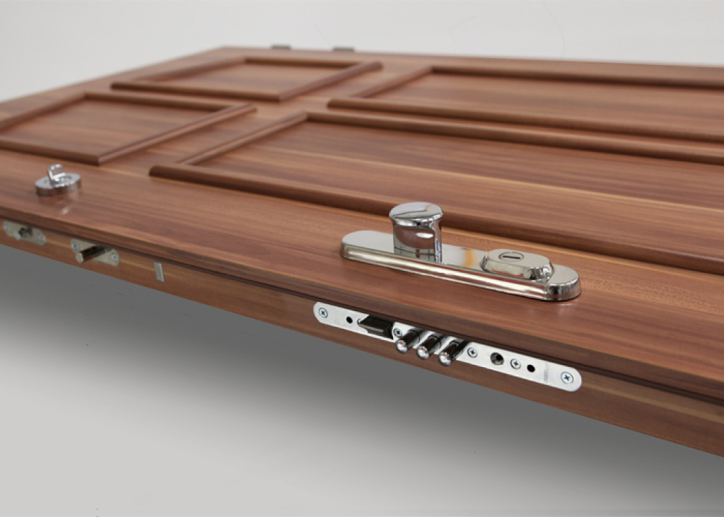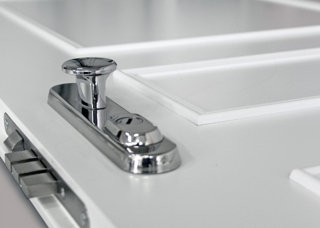 ADLO - Sicherheitstür TEDUO, Kasettendesign, feste Verrielungspunkte an der Bandseite der Tür